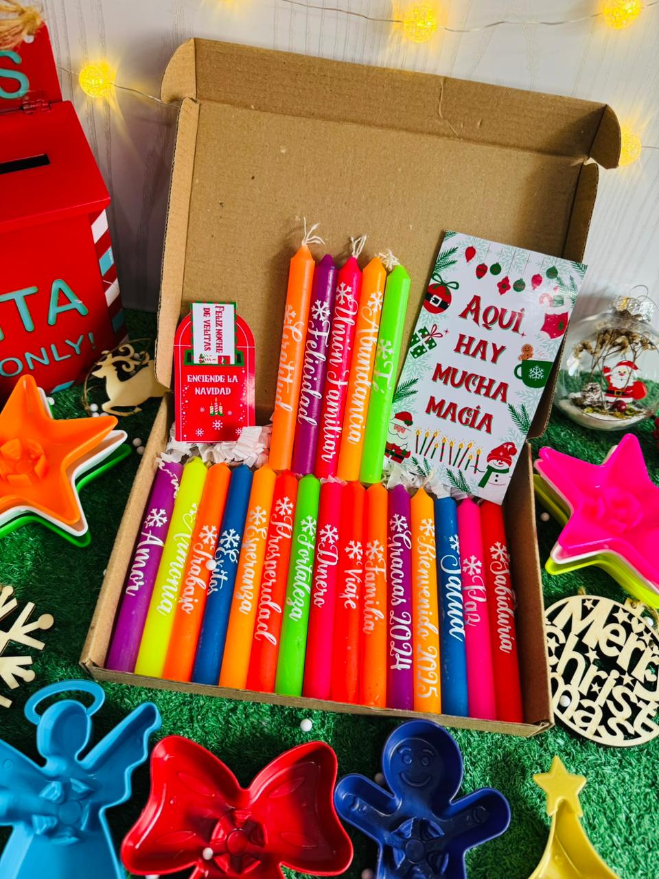 ✔️ Velas con mensajes y deseos navideños predeterminados